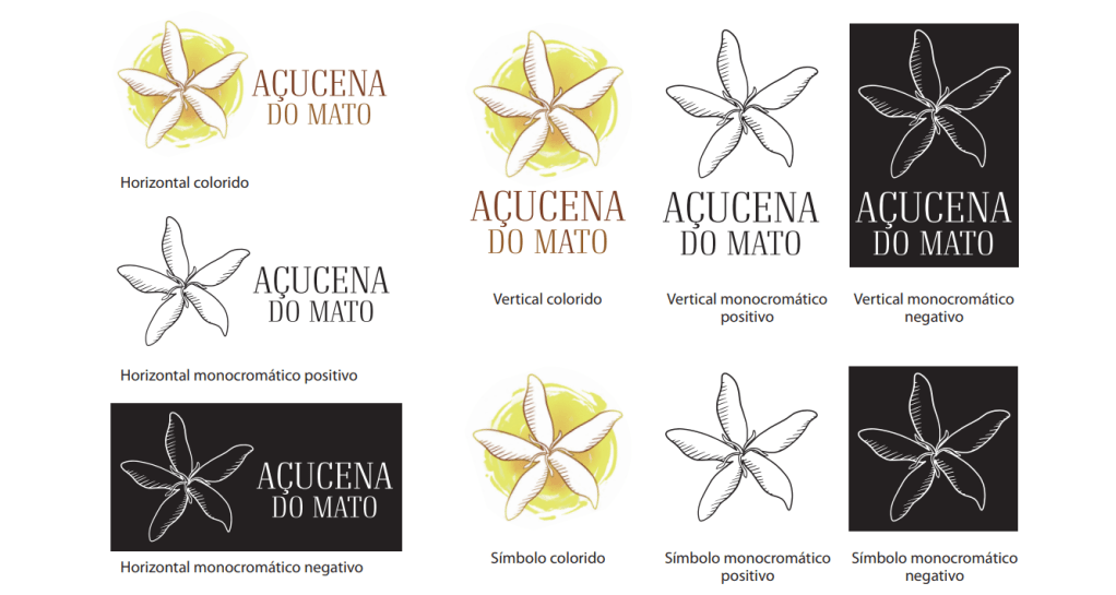 The açucena-do-mato (Posoqueria latifolia), also known as landim, aymará or yemará, is a wild lily found in the coastal forests and tropical savannas in Brazil. It is a tree with small fruits and white flowers that bloom during the summer. Based on descriptions and scientific illustrations found in 19th century books, the Açucena do Mato brand logo features the wild lily flower and typography in a style that refers to the old botanical illustrations in India ink found in encyclopedias from this period.