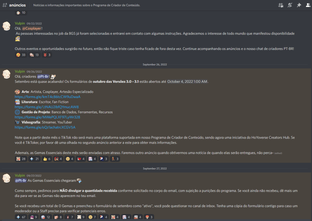 • Representative for 4,000 global Content Creators and 300 Portuguese Content Creators on behalf of HoYoverse Staff.