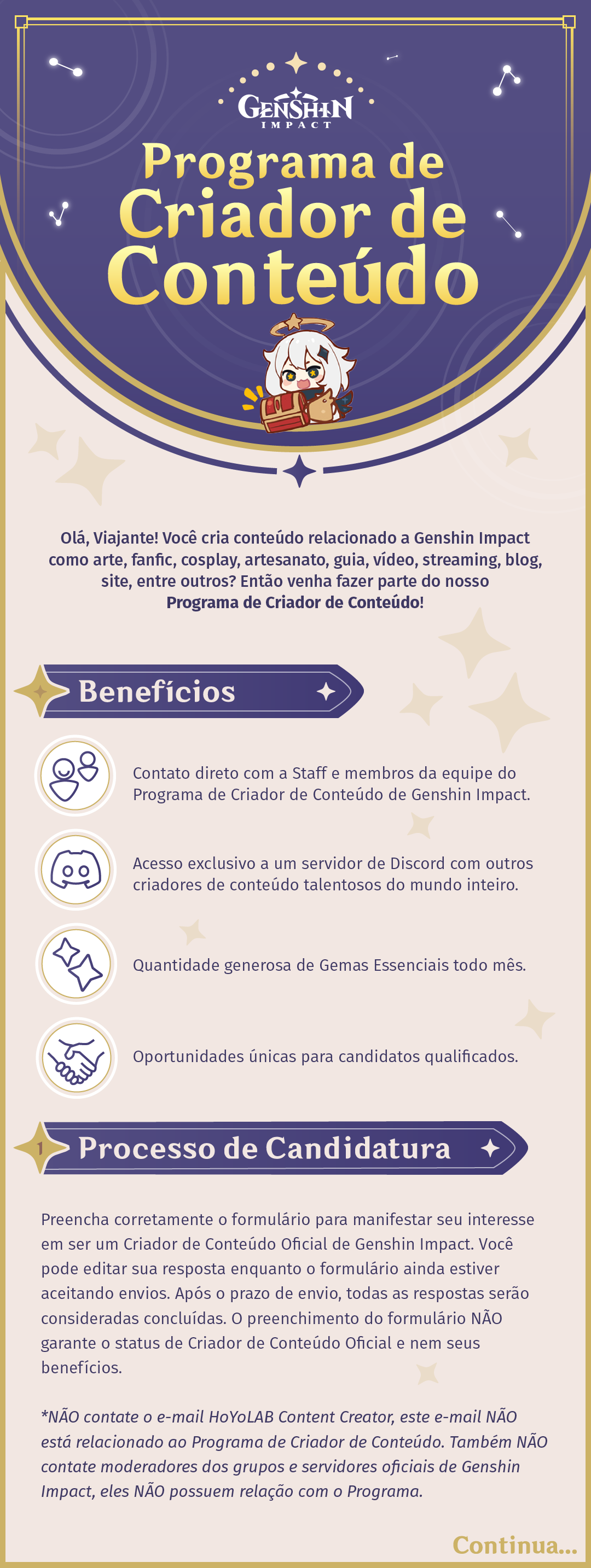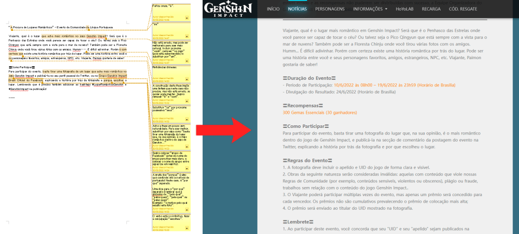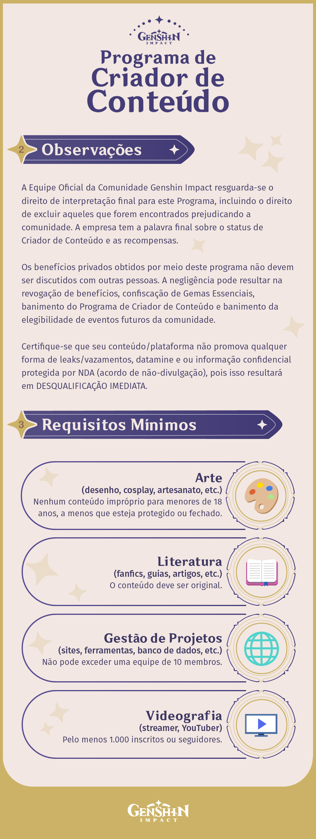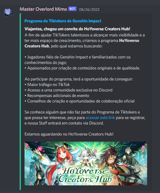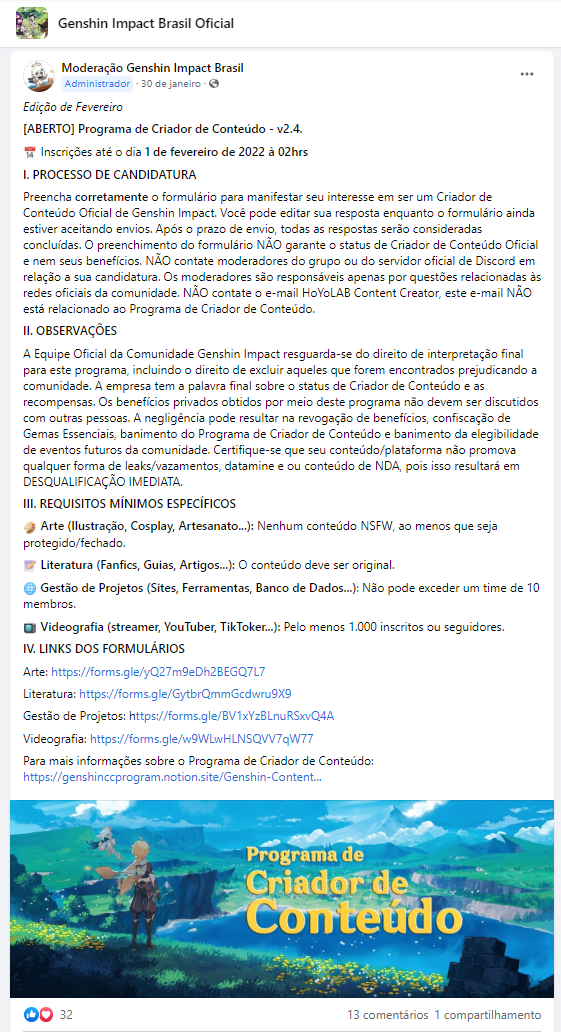 Designing some visual materials to promote the Genshin Impact Content Creator Program for the Portuguese community outside the Discord servers and providing and updating translated texts.